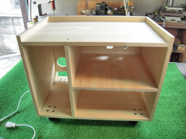 簡単な図面をマンガで作製し、材料にはパイン集成材を、下にはキャスター、4口のコンセントなど材料を購入し、出来るだけ少ない材料で作製するようにしました。